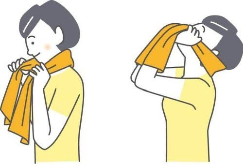 1.タオルの端を両手で持ち、タオルを首の後ろの中心に当てます。