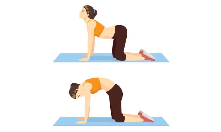 ❸頭を上げ背中をを反らしていきます。この時に肩甲骨を内側に寄せるように意識しましょう!