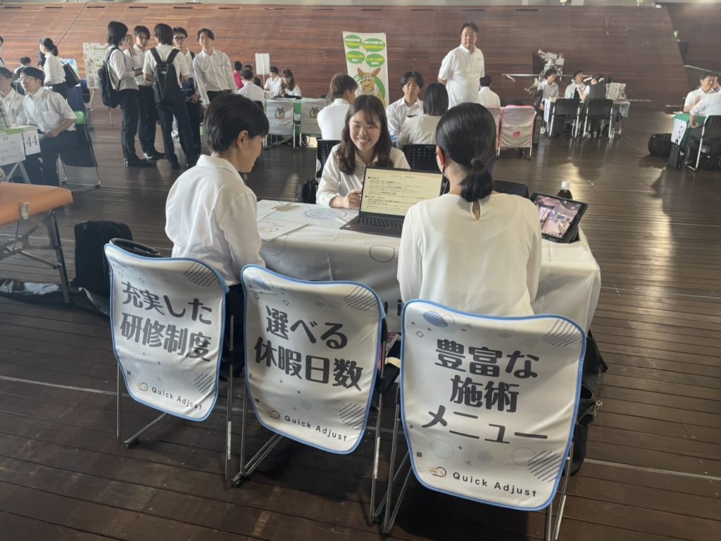 当日は、柔道整復師・鍼灸師を目指す多くの学生さんが参加され、どの方も真剣な表情で各ブースを回っていたのがとても印象的でした。私たちのブースにも多くの学生さんにお越しいただき、熱心に話を聞いてくださったこと、心より感謝申し上げます。