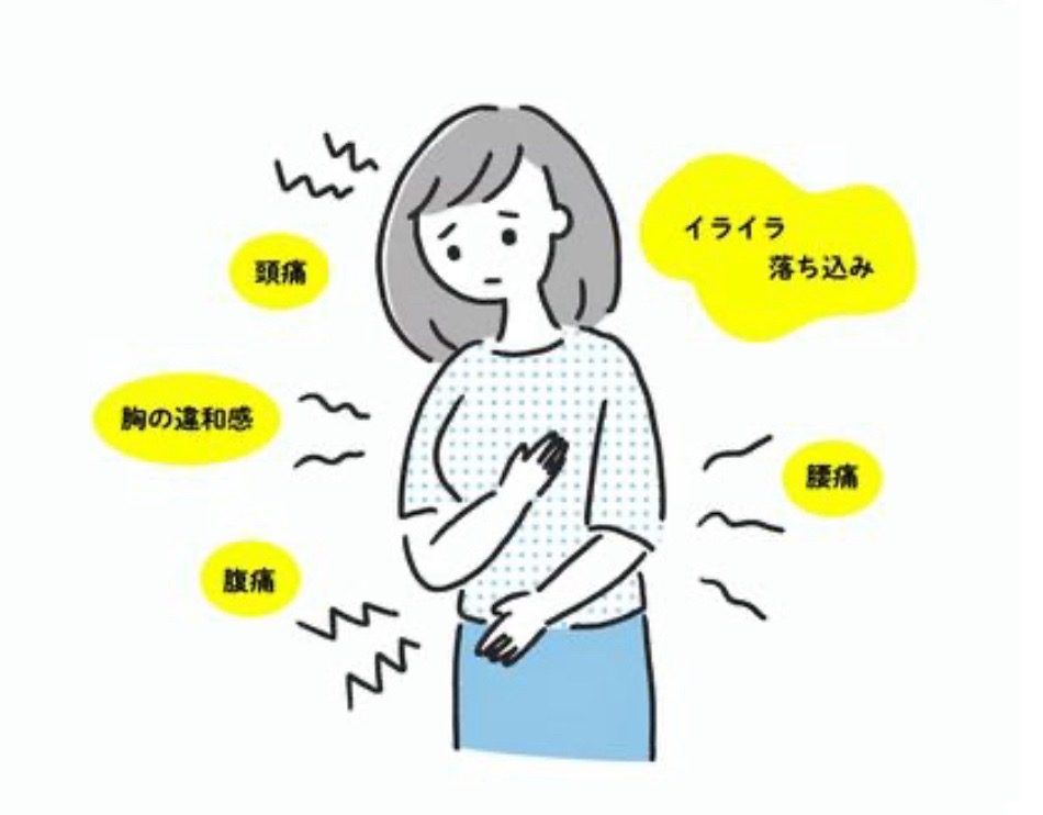 PMSとは、生理が始まる3〜10日ほど前に現れる心や体の不調のことです。はっきりとした原因は分かっていませんが、生理による女性ホルモンの変動が関係していると言われています。症状は人それぞれですが、主にイライラや頭痛、肌荒れ、動悸、眠気、だるさ、腹部や胸の張りなどが現れます。特に精神的な不調が強く出る場合は、重度のPMSとして月経前不快気分障害(PMDD)と診断されることがあります。