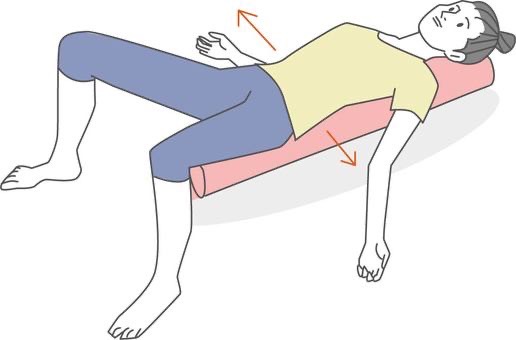 ④背中の下でポールを転がすように上半身をさゆうに揺らします。