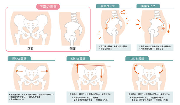 骨盤の歪みは大きく分けて以下のようなタイプがあります。