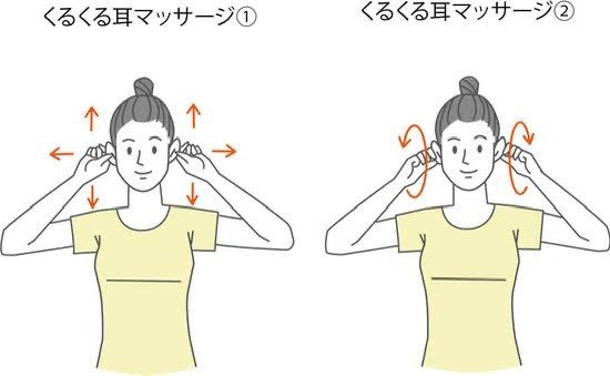 耳を引っ張ったり、大きく回したりすることで気圧の変化による内耳のむくみを改善し、自律神経を整えます。