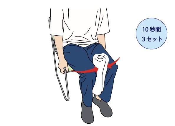 ②息を吐きながらゆっくりとタオルを挟みつつ、おしりを締めます。