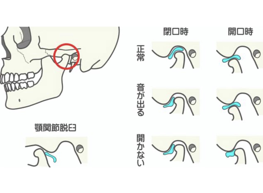 顎関節を構成する骨や筋肉、関節円板、靭帯などの異常により生じるもので、症状として「口を開けると音が鳴る」「口を開けると痛みがある」「口が開かない」などがあります。