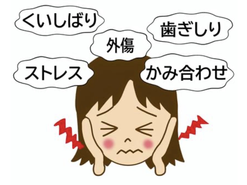 などがあります。関節円板にズレが生じるのには「顎関節に何かしらの強い力が継続的に加わる」「顎や全身に瞬間的に激しい圧力が加わる」ことです。