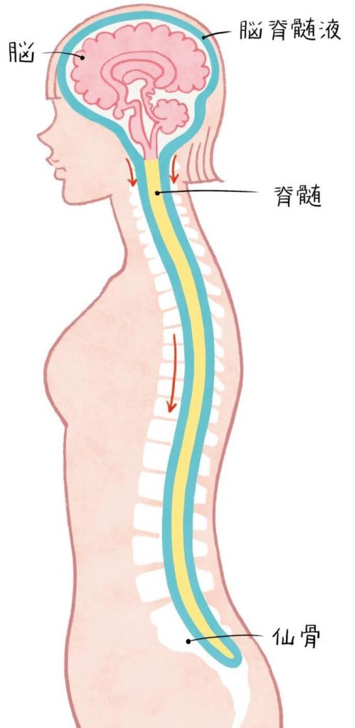 後頭骨と仙骨のわずかな動きによって、脳脊髄液は循環しています。この循環システムが健康維持に大切になります。