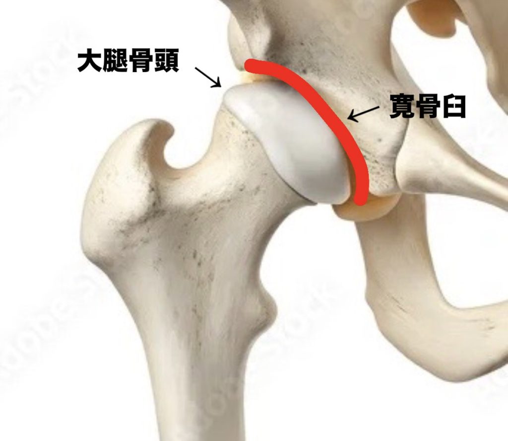股関節は太ももの骨(大腿骨)の球状の「大腿骨頭」が、骨盤にあるお椀状の「寛骨臼(かんこつきゅう)」にハマっており、脚を様々な方向に自由に動かすことができます。