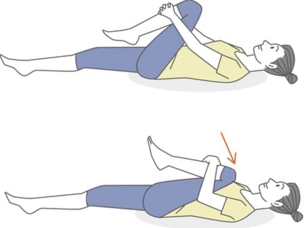 3.息を吐きながら膝を胸に引き寄せる