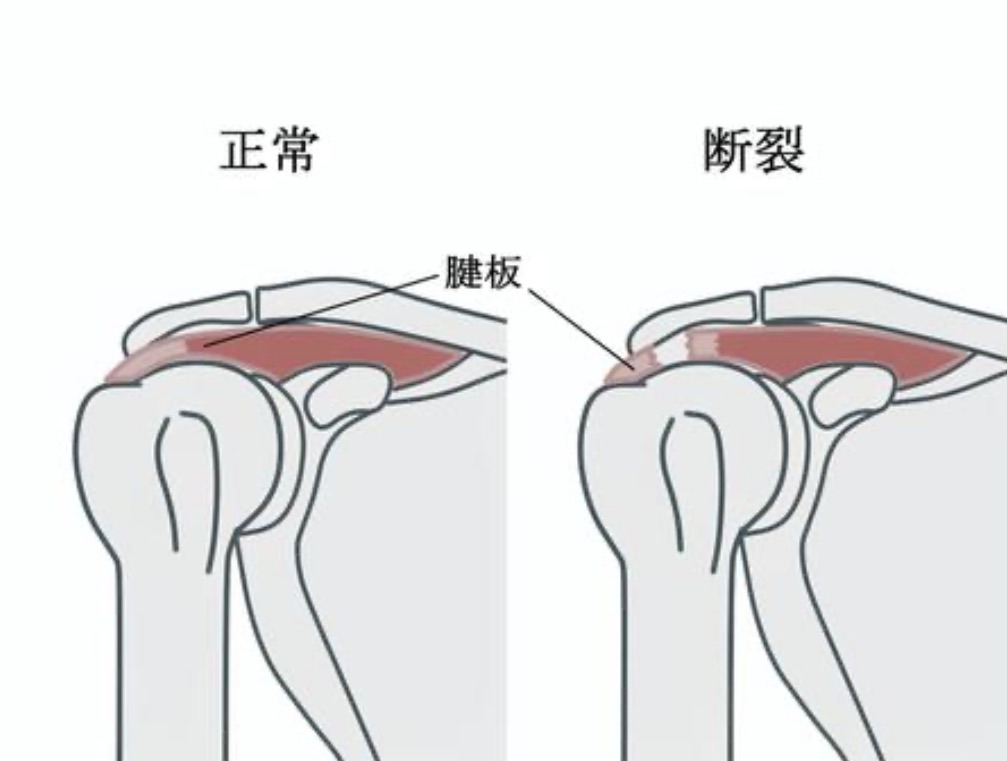 肩の安定性と動きを担う腱板(棘上筋・棘下筋・肩甲下筋・小円筋)が、傷付くまたは断裂する状態を指します。主な原因としては、スポーツや転倒などによる肩への強い衝撃や、加齢によって腱が脆くなり、日常生活で繰り返し使うことによる損傷などがあります。