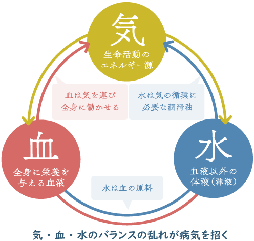 鍼治療は、中国で約2000〜3000年前に生まれたとされる東洋医学の治療法です。古代中国では「気(き)・血(けつ)・津液(しんえき)」という生命エネルギーの流れが体内を巡っており、この流れが滞ることで病気になると考えられていました。