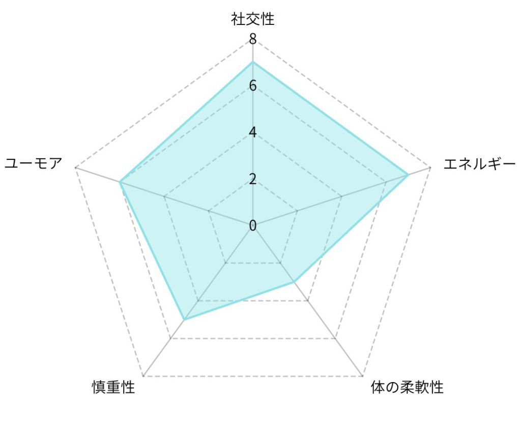 篠原先生は人と関わったり、ワイワイ盛り上がるのが好きなため社交性は高め!体の柔軟性は低めです(笑)