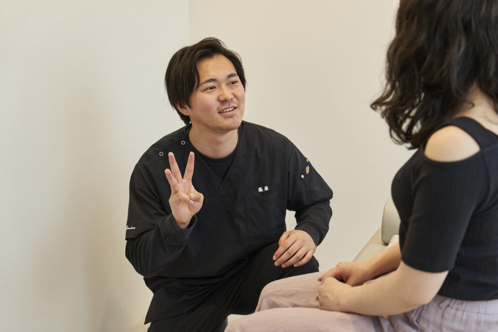 現在の症状、生活習慣、仕事環境、過去のケガや出産歴などを丁寧にお伺いします。